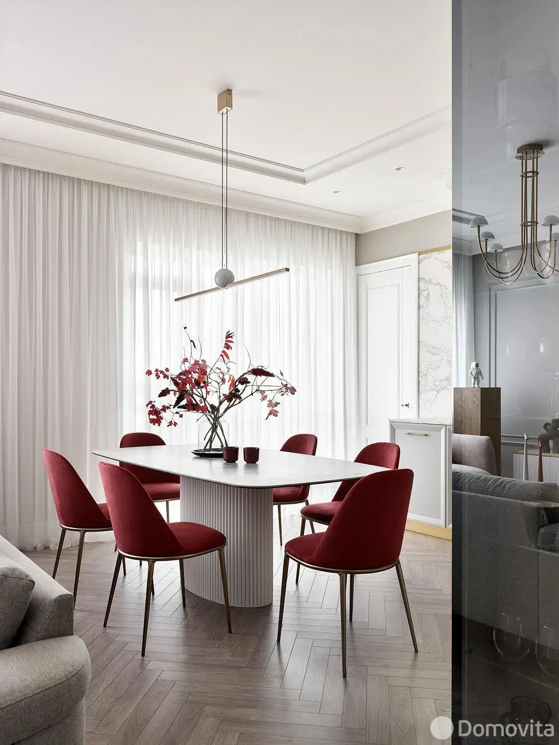 Проект квартиры изготовлен известными дизайнерами г.Минска. Премиальная отделка. В квартире: мебель изготовлена по индивидуальному проекту. Двери изготовлены компанией Lazio. В сан/узле + пол керамогранит, теплый пол, сантехника встроенная, установлен фильтр. В квартире предусмотрено несколько режимов освещения.