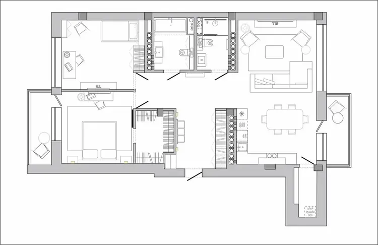 Квартира с удобной для жизни планировкой, состоит из просторной кухни - гостиной, кладовкой, 2-х изолированных комнат, одна из которых с гардеробной, 2-х санузлов, 2 балконов. Квартира очень