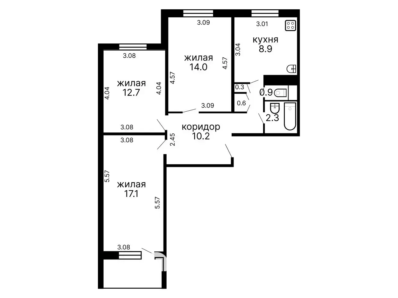 Квартира расположена на 5 этаже 6-этажного панельного дома 1999 года постройки. Общая площадь составляет 66.7 кв.м, жилая – 43.5 кв.м, а просторная кухня – 8.9 кв.м.