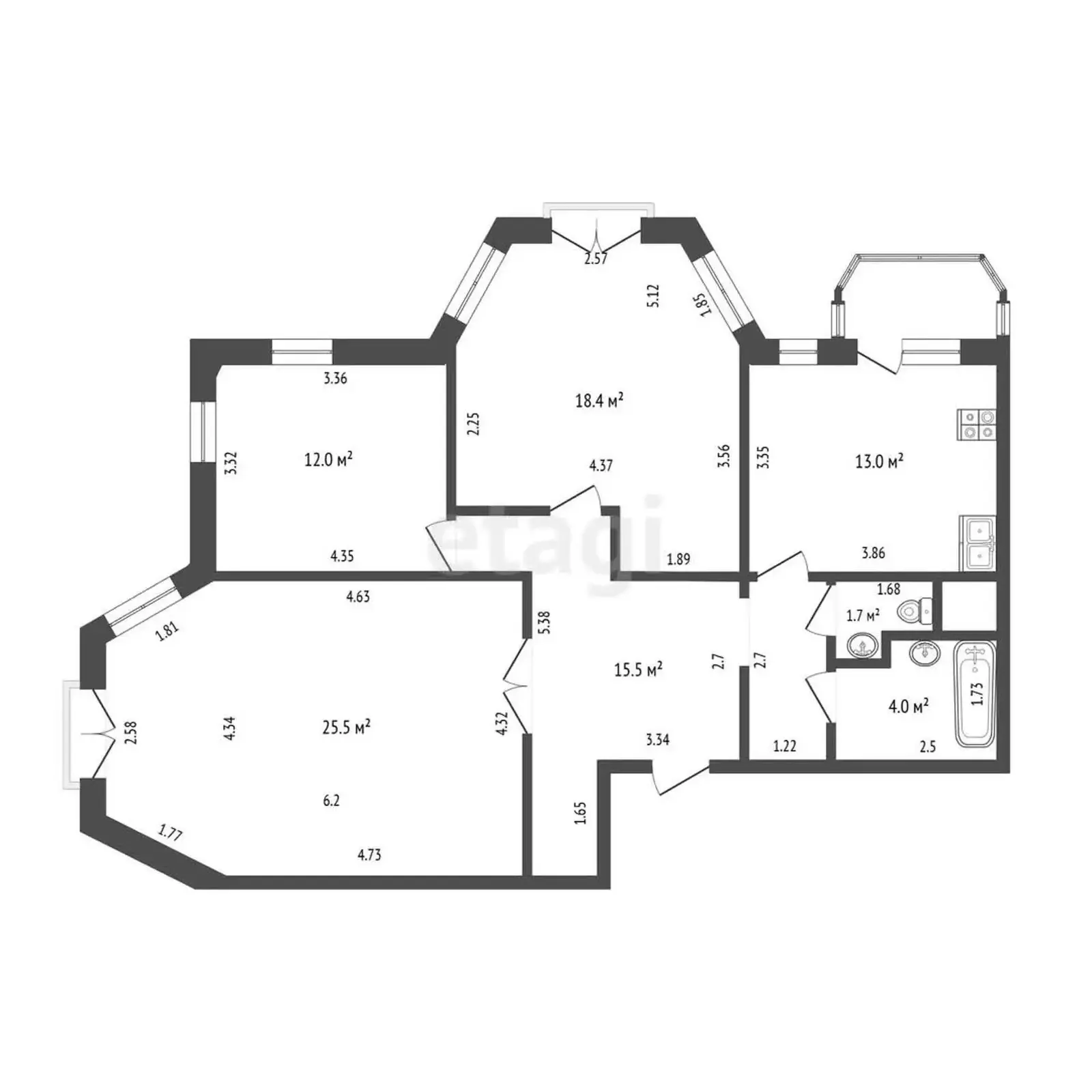 2 комнаты с эркерами – что обеспечивает максимальное количество дневного света в квартире