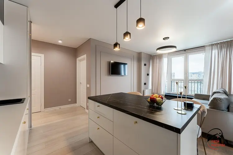 Ремонт выполнен из качественных материалов, так как делался для себя. Квартира расположена на высоком 15-м этаже, что открывает потрясающий вид из окна на город. Площадь квартиры указана по СНБ, общая площадь 60.1 м2.