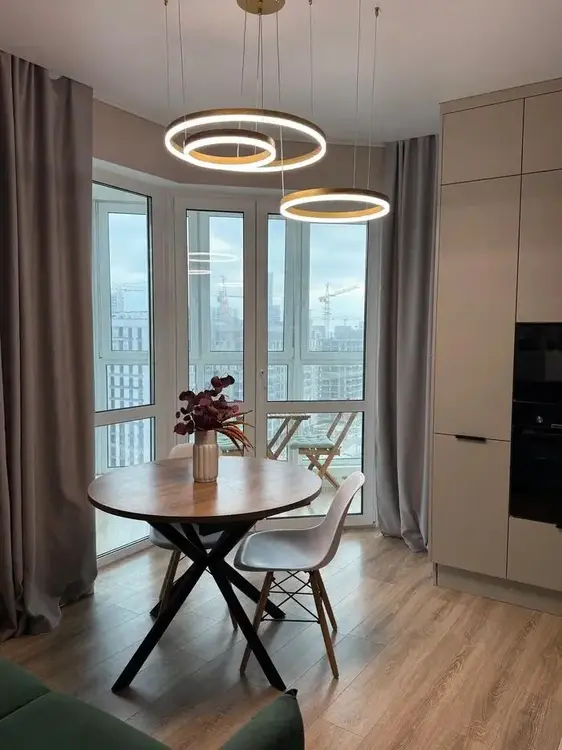 Функциональная и современная планировка: кухня-гостиная с выходом на лоджию и две изолированные комнаты: спальня и детская. Квартира выполнена в минималистичном стиле в серо-бежевых тонах. Вдоль гостиной атмосферная лоджия с шикарным видом с 13-го этажа. Красивый вид открывается из всех комнаты! Квартира укомплектована премиальной техникой Bosch (на часть имеется расширенная гарантия).