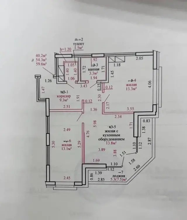 Площадь квартиры по СНБ 61,3м2. (h-2.7м).