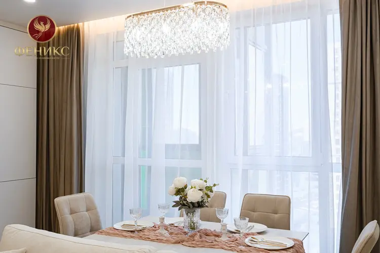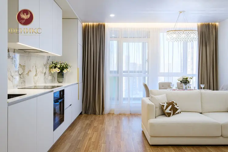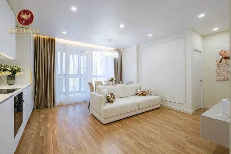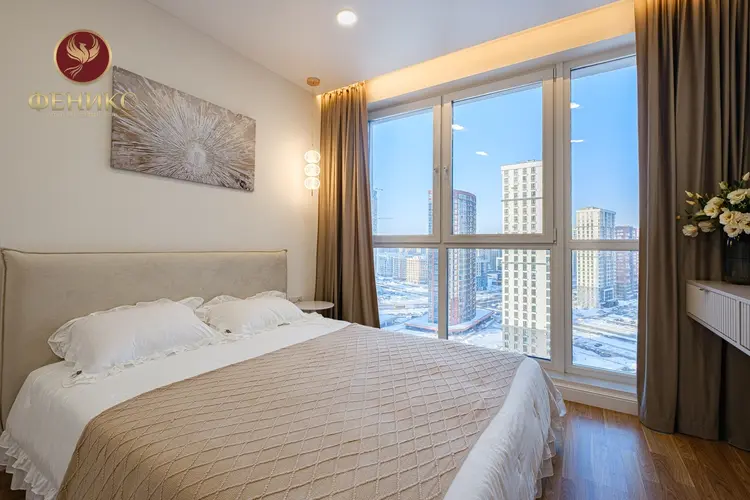 - Большие панорамные окна в пол с усиленными двухкамерными стеклопакетами. Застеклённый балкон.