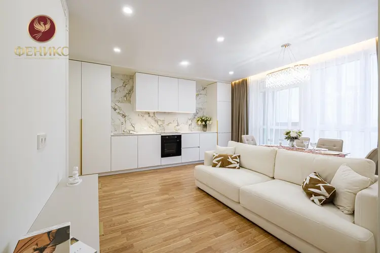 В квартире сделан дизайнерский ремонт. При отделке использовались дорогие и качественные материалы. Полностью укомплектована мебелью и бытовой техникой, что позволит Вам сразу заселиться без дополнительных финансовых вложений. Установлена стильная кухня с доводчиками. Духовой шкаф с функцией самоочистки, варочная панель, встроенный холодильник, вытяжка. Вся бытовая техника на гарантии. Межкомнатные эмалированные двери. Металлическая входная дверь. В коридоре вместительный шкаф. Натяжной потолок со скрытыми потолочными карнизами и точечными светильниками. Стильная ванная комната сделана «под ключ». Немецкая раковина и унитаз