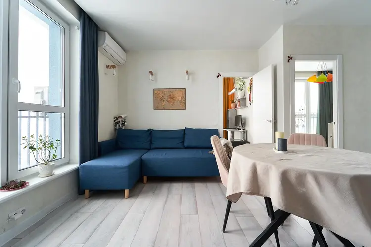 Уютная и светлая евротрёшка с дизайнерским ремонтном на 15 этаже. В коридоре 6 квартир. Практичная планировка: 2 спальни , кухня - гостиная, совмещенный сан узел и просторный коридор.