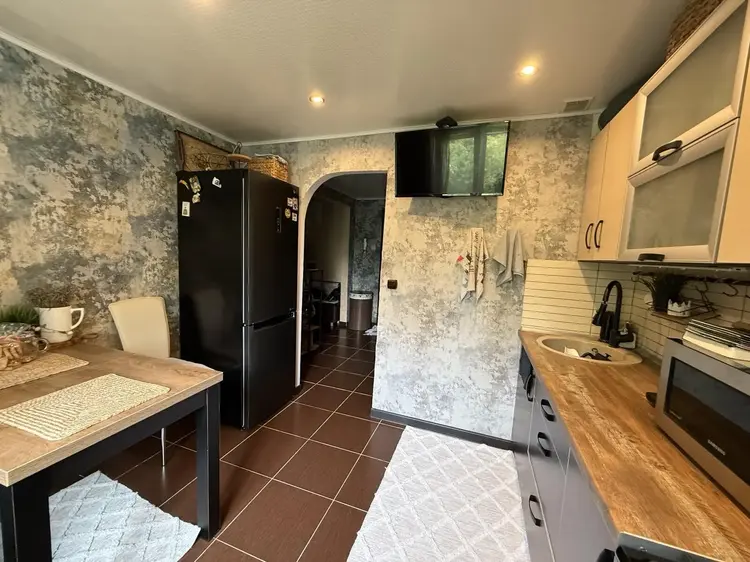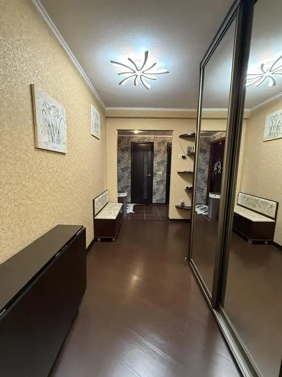 Металлическая дверь, стеклопакеты, ламинат, встроенная кухня,, 2 лоджии. Трубы меняли 3 года назад. Мило,уютно и хорошо..По изобилию зелени и экологической обстано вке – это один из лучших микрорайонов Минска.Через дорогу расположено Цнянское водохранилище - это природный парк с развитой инфраструктурой для отдыха, включающего набережную, амфитеатр, спортивные площадки, детские зоны, места для выгула собак и прочие объекты. Рядом находится крупнейший торговый центр - ЭКСПОБел с гипермаркетом BIGZZ, также здесь есть магазины, супермаркеты и бизнес-центры. В микрорайоне есть Республиканский центр олимпийской подготовки по лёгкой атлетике и Минский городской центр олимпийского резерва по борьбе. Один из выдающихся ландшафтных проектов - Слепянская водная система. В шаговой доступности лесопарк "Зелёный Луг" и другие парки, места для отдыха, спортивные площадки, детские площадки.