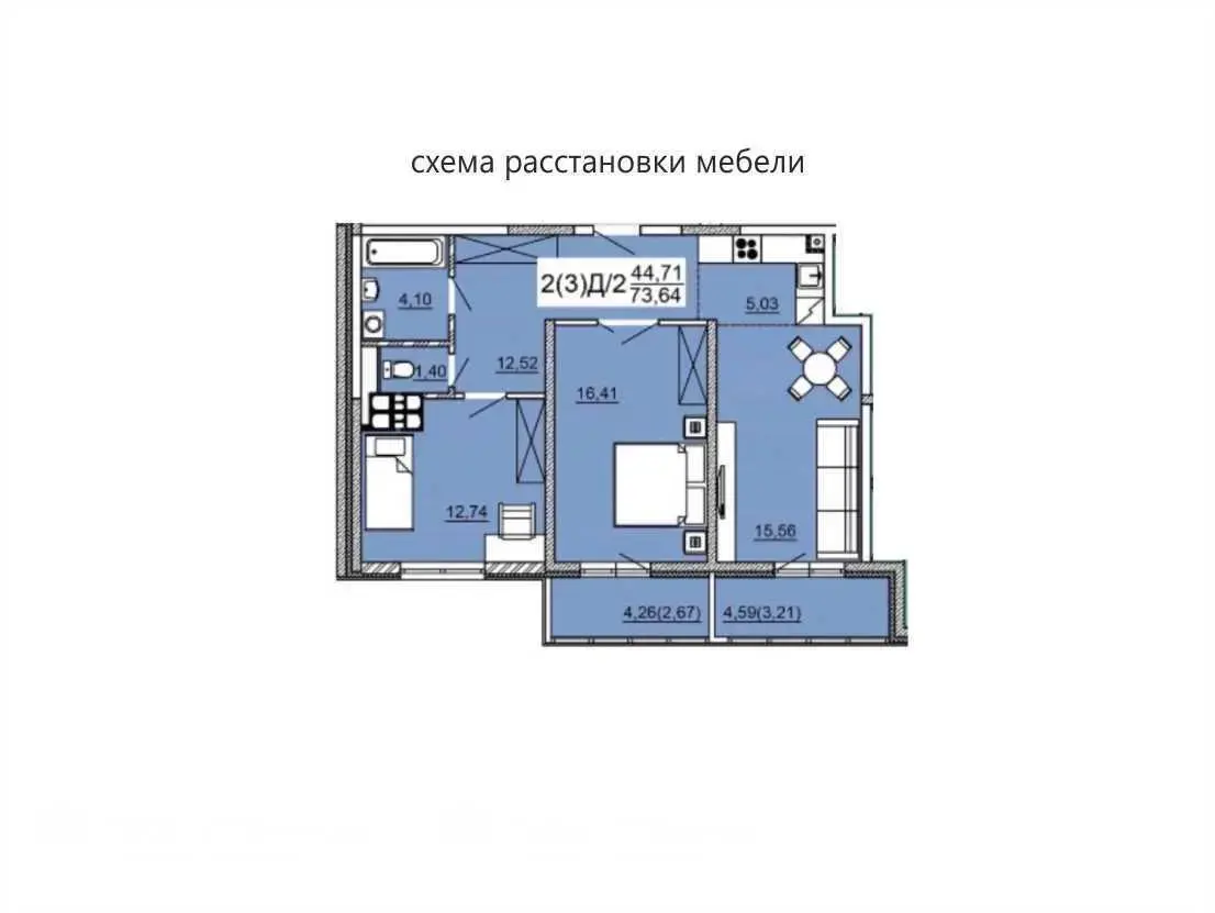 Площадь квартиры по СНБ 73 м кв. (с учётом лоджии). Общая площадь 66.9 м кв.