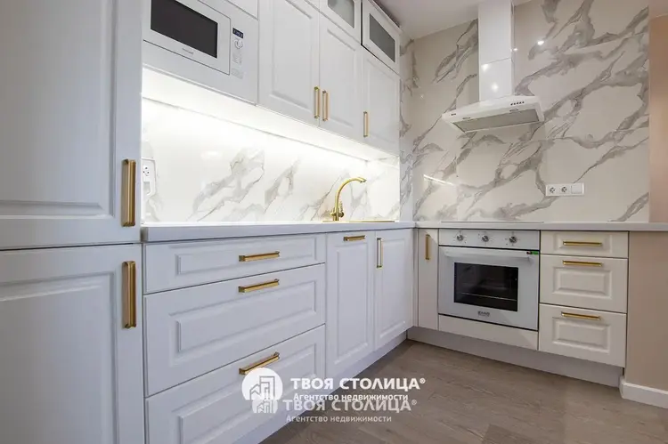В квартире сделан качественный ремонт с использованием высококачественных строительных материалов. В оконных проемах, в том числе остекление лоджии, установлены стеклопакеты ПВХ. Встроенная кухонная мебель укомплектована бытовой техникой. Напольное покрытие ламинат и плитка.