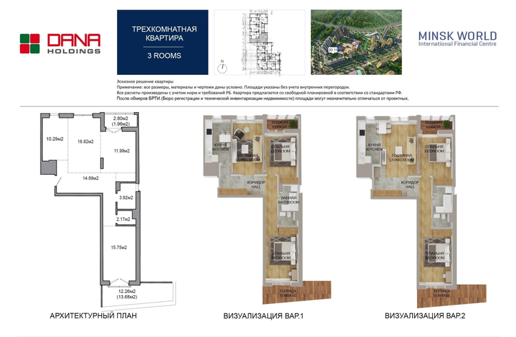 3 комнаты