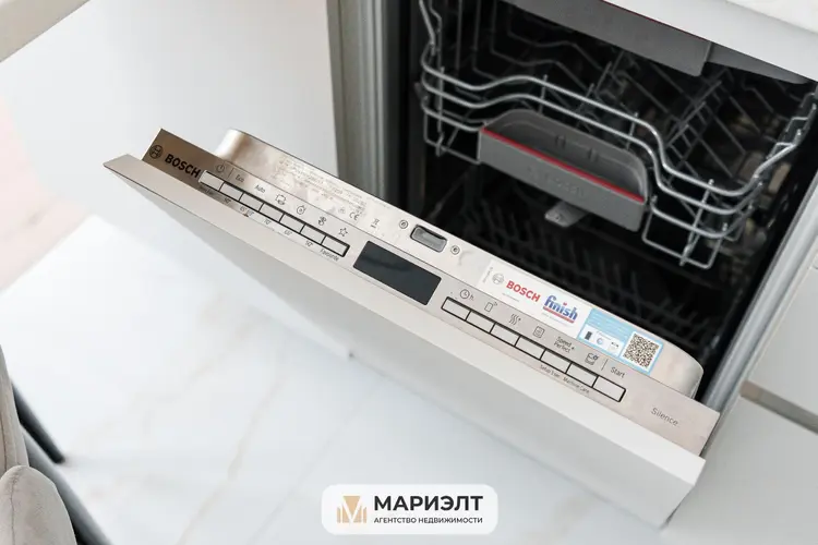 -Встроенная кухня со всей необходимой бытовой техникой (вытяжка, варочная панель «LG», духовой шкаф «BOSCH», микроволновая печь «BOSCH», холодильник «LG», посудомоечная машина «BOSCH», также есть измельчитель пищевых отходов.