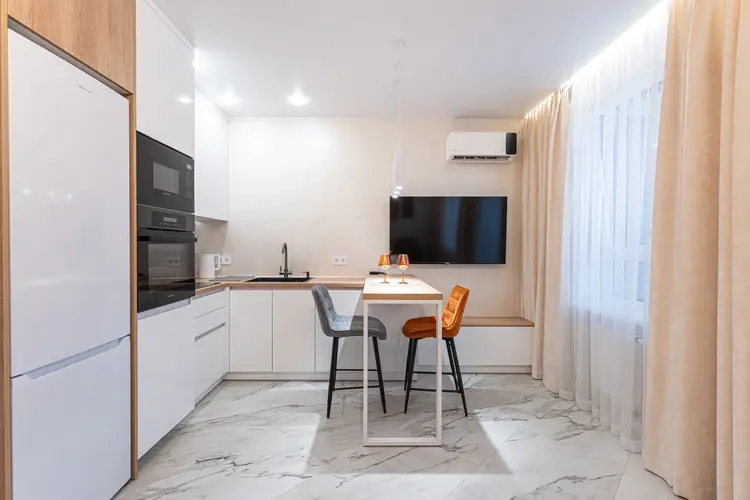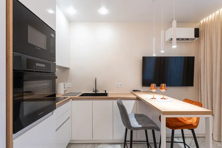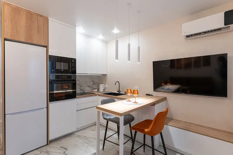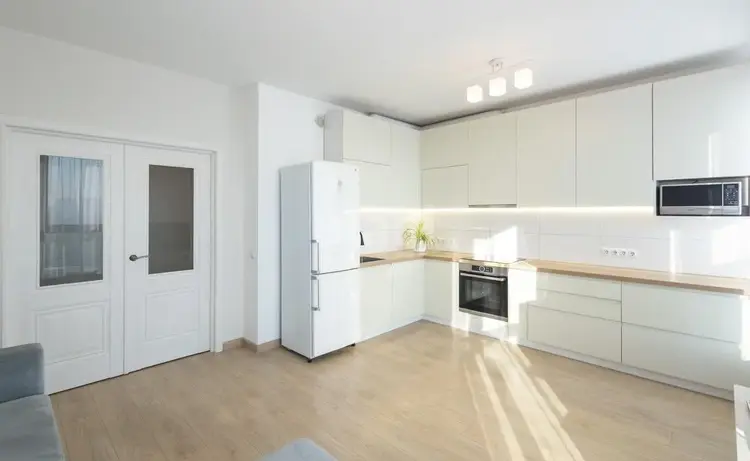 Встроенная кухня с техникой, включая посудомоечную машину и встроенный холодильник