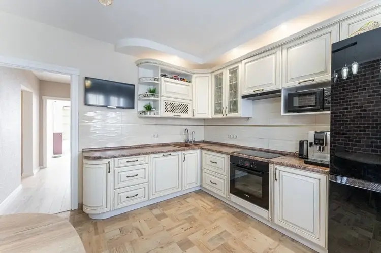 - Кухня, где хочется собираться: Просторные 11,7 кв. м. Здесь и современный гарнитур, и обеденная зона, для долгих семейных завтраков. Встроенная посудомоечная машина фирмы BOSСH. Установлена система "теплый пол", что создаёт ещё больше комфорта.