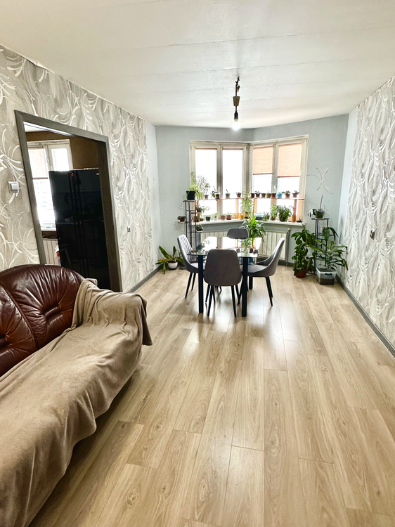 Недоделанный ремонт, который сможете возобновить по своему вкусу и желаниям. В основном в квартире отделка застройщика.