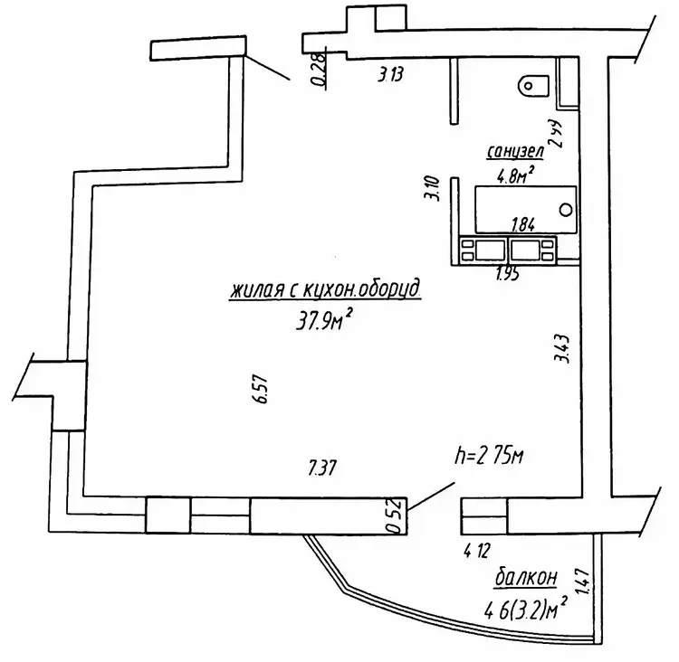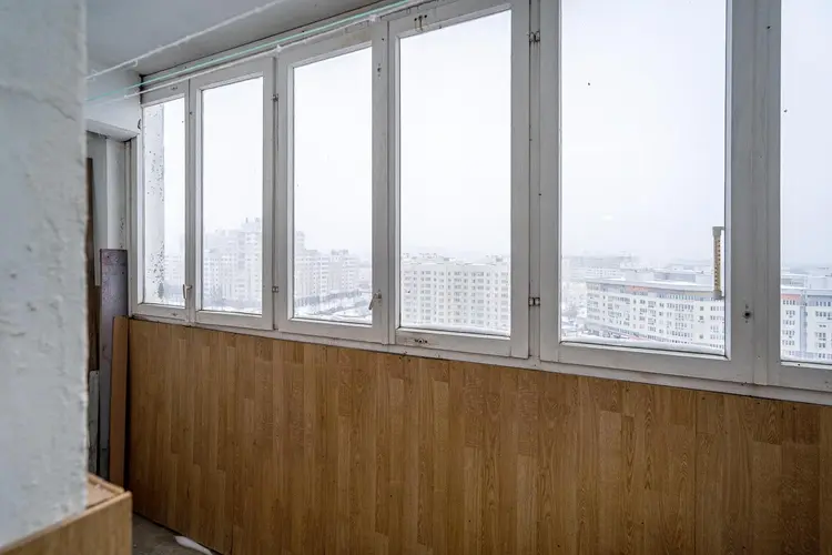 На полу линолеум и плитка.