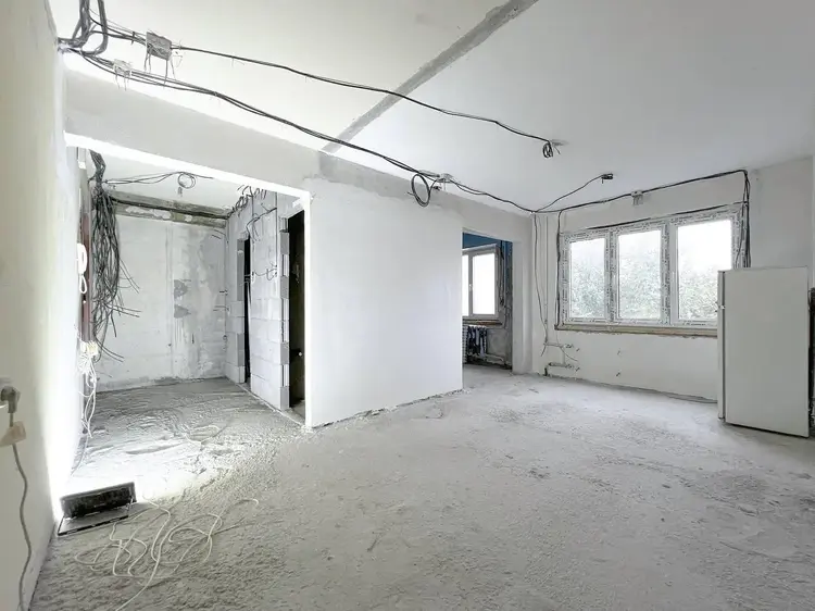 Стены выровнены, оштукатурены и подготовлены под чистовую отделку в большей части квартиры. (Ремонтные работы будут продолжаться в остальных помещениях)