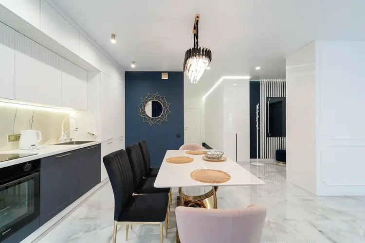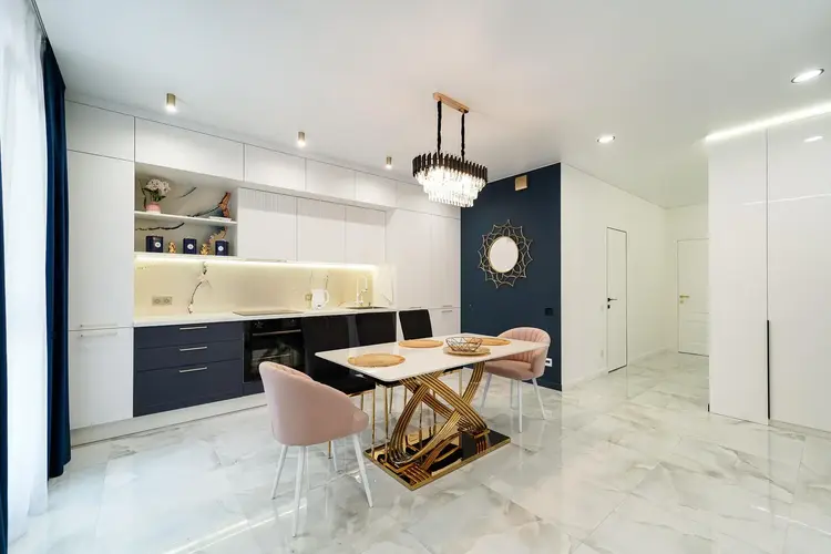 Бытовая техника: холодильник- Liebherr; варочная панель с встроенной вытяжкой Elica; духовой шкаф и посудомойка -BOSCH; винный шкаф; телевизор ЖК LG 60дюймов.