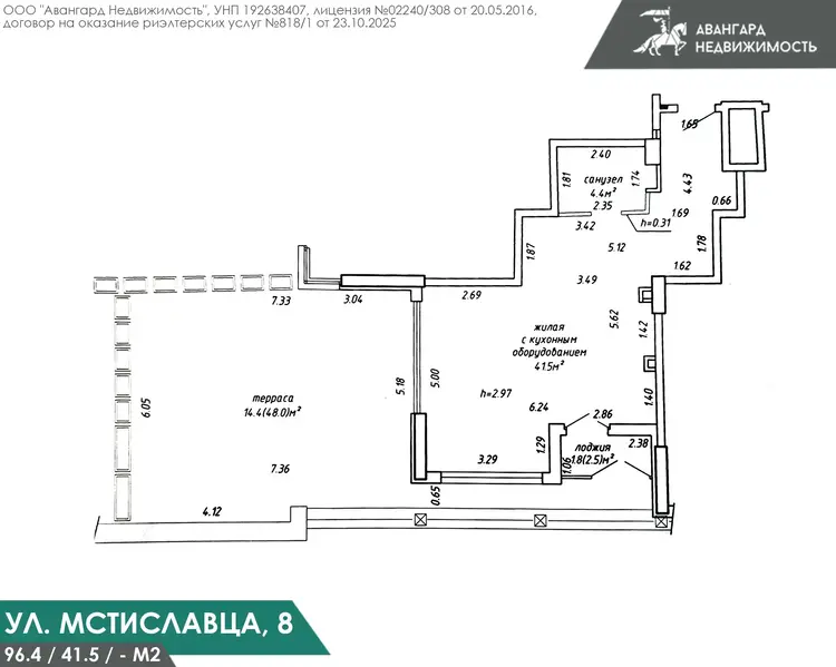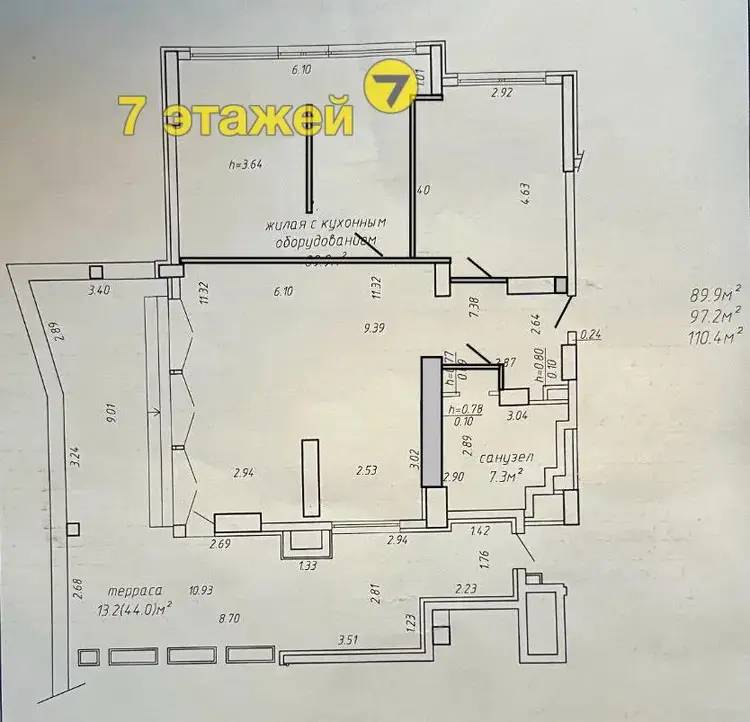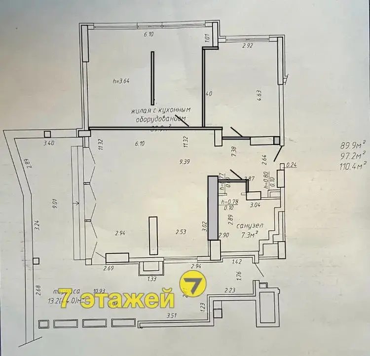 В квартире выполнен ремонт по индивидуальному дизайнерскому проекту! Площадь указана по СНБ 110,4 м2, общая 97,2 м2, жилая 89,9 м2, собственная терраса 44 м2.