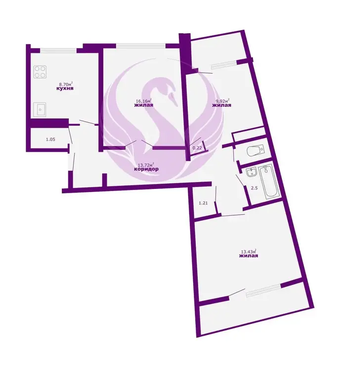 - Уютная большая трехкомнатная квартира, что обеспечивает личное пространство для каждого члена семьи. Жилая площадь составляет 39,51м2, а кухня — 8,9 м2 идеально подходит для совместных ужинов и семейных встреч.