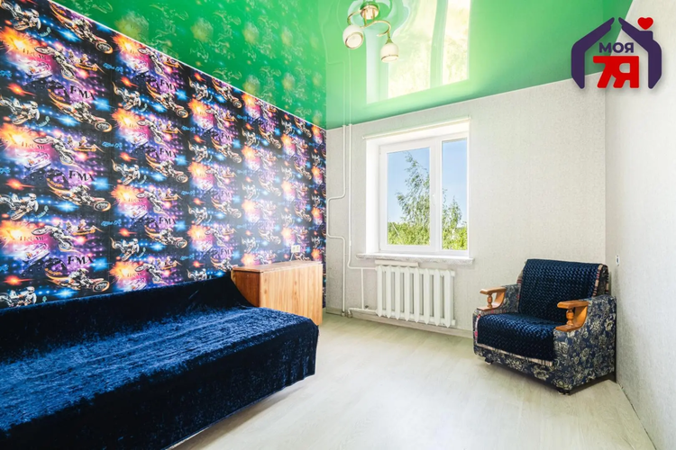 -Внутренние отделочные работы выполнены с использованием качественных материалов. Стены оклеены обоями, которые отлично сочетаются с мебелью и общей атмосферой квартиры. В жилых комнатах сделаны натяжные потолки, которые добавляют визуальную высоту помещениям.