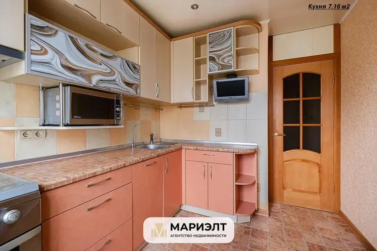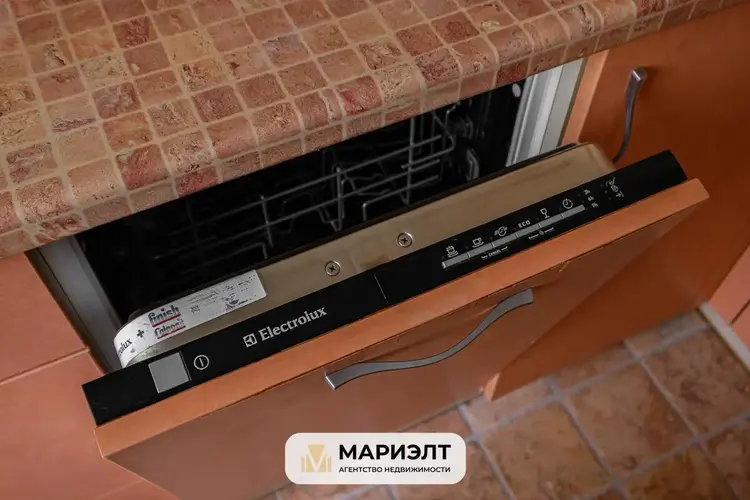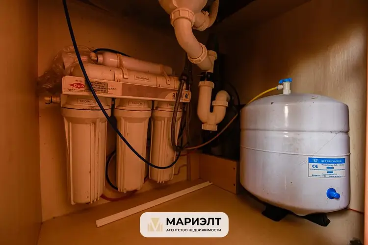 • Встроенная кухня оборудована современной техникой: посудомоечная машина (40 см), газовая плита, духовка, вытяжка, фильтр для воды (обратный осмос).