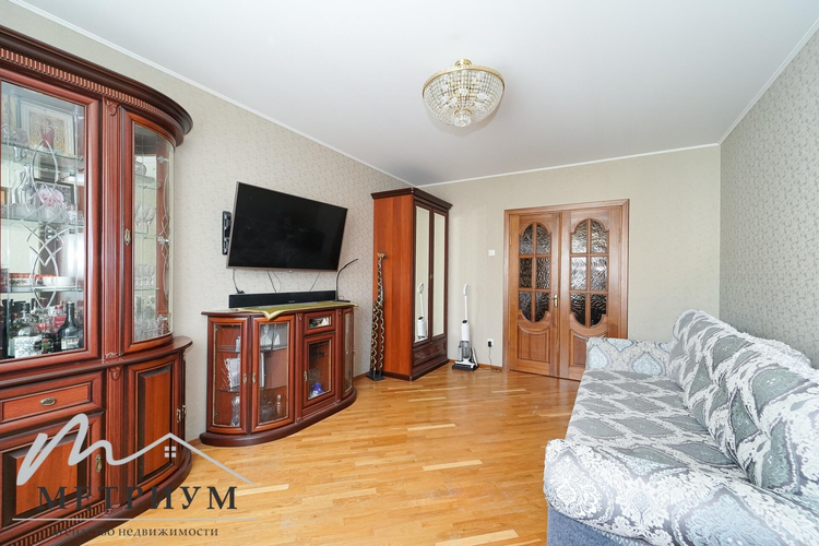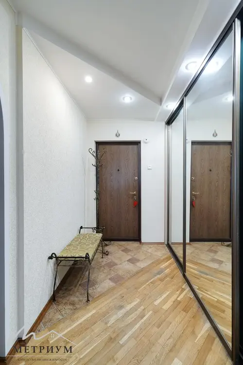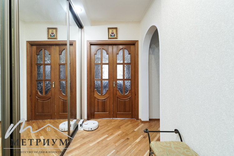 В прихожей и комнатах 3 шкафа-купе. На полу в комнатах паркет, в санузле и кухне плитка. Натяжные потолки в комнатах.