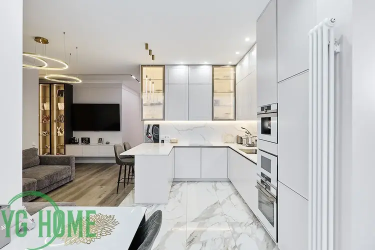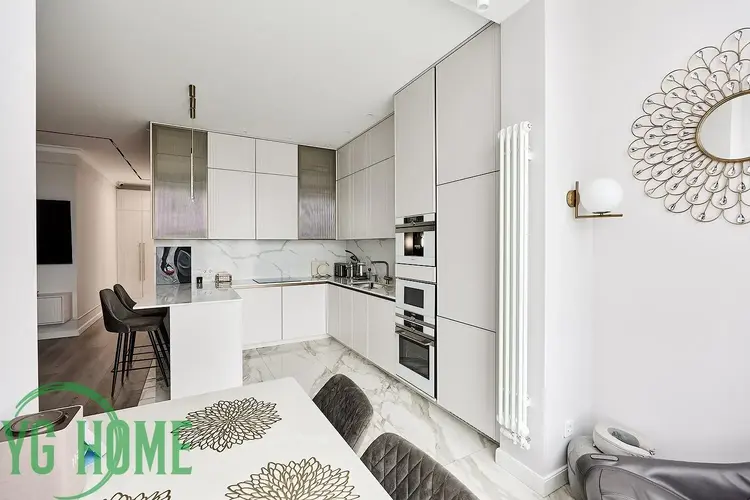 В квартире сделан дорогостоящий дизайнерский ремонт, импортная бытовая техника лучших производителей, кондиционеры, электрошторы, множество сценариев освещения, продуманные варианты хранения, система видеонаблюдения. Вся мебель изготавливалась на заказ в соответствии с дизайн проектом. Выделена зона рабочего кабинета в спальне с 2 встроенными шкафами, вместительная гардеробная, детская с ручной росписью стены художником под заказ.