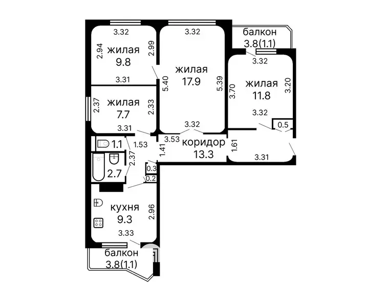 3 комнаты