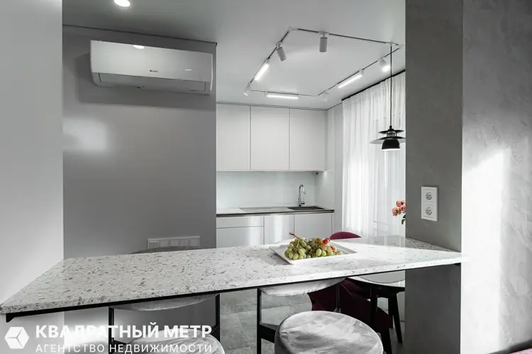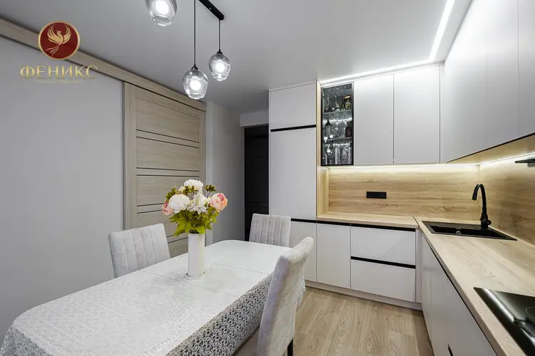 Грамотное распределение освещения подчеркивает все детали интерьера, а дизайн квартиры дарит ощущение легкости и уюта.