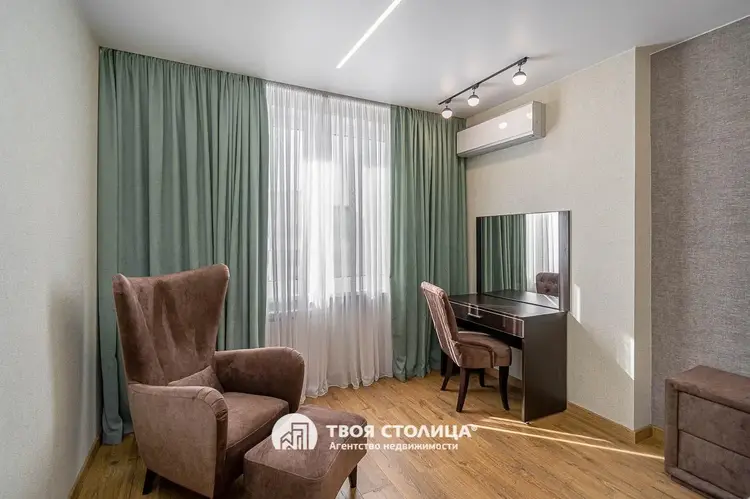 Комфортная трехкомнатная квартира с ремонтов в современном ЖК около метро.Многофункциональный жилой комплекс Каскад. Монолитно-кирпичный дом 2010 года постройки отличается небольшой этажностью – от 7 до 10 этажей.Квартира расположена в 9-этажной секции. Функциональная планировка: изолированные комнаты правильной прямоугольной формы, одна комната с выходом на застекленную лоджию, просторная кухня 10,4 кв.м., раздельный санузел, оборудована гардеробная, объемный коридор.Окна кухни в двух жилых комнат выходят во двор (восточная сторона).Площадь квартиры по СНБ составляет 91.8 кв.м, общая площадь 88.5 кв.м.Квартира отличается современным ремонтом: каждая деталь продумана до мелочей, использованы качественные материалы и актуальные цветовые решения, полностью меблирована и оснащена необходимой бытовой техникой.Кухня оборудована бытовой техникой Siemens: индукционная варочная панель, вытяжка, духовой шкаф с функцией пароварки, холодильник; кофемашина DeLоnghi, телевизор Sony BRAVIA. Установлен фильтр для воды с системой обратного осмоса. В гостиной телевизор Sony BRAVIA и Саундбар Sony c системой Dolby.В оконных проёмах установлены стеклопакеты с профилем из ПВХ. Натяжные потолки с точечными и подвесными осветительными приборами с различными сценариями освещения. Напольное покрытие высокого класса: ламинат, кафельная плитка. Санузлы облицованы плиткой актуального дизайна. Установлена сантехническая посуда и мебель для ванной комнаты: установлена ванна, душевая система, унитаз, умывальник, зеркало с подсветкой. Подключены приборы учёта воды. Также в квартире оборудована постирочная, в которой размещены стиральная и сушильная машины Siemens с системой i-DOS. Микроклимат в объекте регулируется кондиционерами. Спутниковая антенна Триколор, домофон, проведены оптоволоконная связь и сигнализация. Грамотно организована система хранения: вместительный шкаф-гардеробная в прихожей, шкаф-купе на лоджии и шкафы и корпусная мебель в жилых комнатах.Межкомнатные двери - массив, входная дверь в квартиру - металлическая.Квартира в отличном состоянии, есть всё необходимое для комфортной жизни.Тамбур на две квартиры, который закрывается. На первом этаже размещена колясочная для хранения велосипедов и колясок. Дом оборудован бесшумным грузопассажирским лифтом, обслуживается товариществом собственниковВо дворе предусмотрено достаточное количество парковочных мест с несколькими въездами, закрывающимися шлагбаумами с 2х сторон, установлено уличное круглосуточное видеонаблюдение. Дополнительно можно купить или снять в аренду машино-место в паркинге. Около дома электрозаправка.Ухоженная придомовая территория: детские спортивные и игровые площадки, зеленые дворы, аллеи и зоны для прогулок всей семьи.Рядом находятся ТЦ «Корона», магазин «Белмаркет», «Мясная лавка», аптека, почта, банки, пункты выдачи Wildberries, Ozon, турагентство, салоны красоты, тренажерные залы, Национальный бассейн, нотариальная контора, салоны красоты, медицинский центр, стоматология, СТО, автомойка. Во дворе расположен новый детский сад, школа в 5 минутах ходьбы.До станции метро «Молодежная» 2 минуты пешком, на общественном транспорте за 10 минут можно добраться до проспекта Победителей и за 15 минут до проспекта НезависимостиСмотреть подробнее Торг. Предложите свою цену. Доступен видеообзор кварт