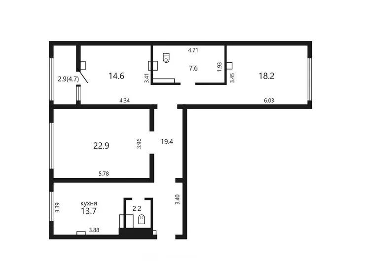 Просторная светлая 3х комнатная квартира 107.4 кв. метра рядом с метро в современном комплексе комфорт-класса «Каскад». Дом 2014 года постройки.
