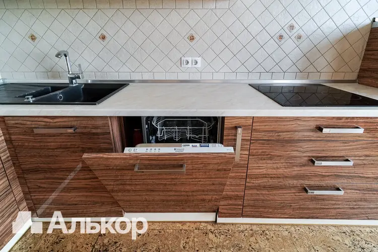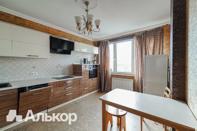 Входная металлическая дверь. Домофон. Подведен интернет. На полу ламинат, на стенах обои. Встроенная кухня