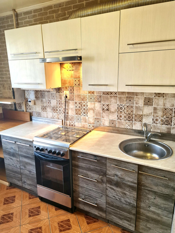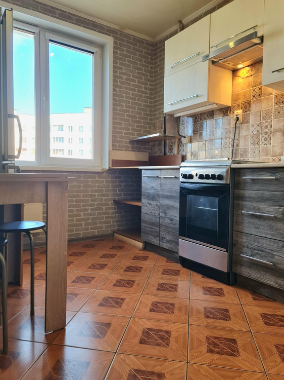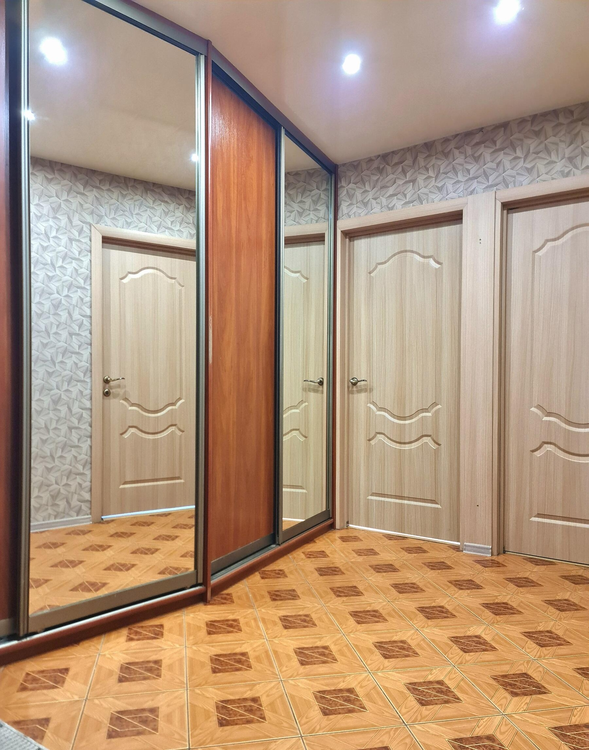 стандартная планировка, 62,9 кв. метров (без учёта площади лоджии). Металлическая дверь, в двух комнатах и кухне установлены пластиковые стеклопакеты, в коридоре и кухне напольное покрытие - плитка, в двух комнатах "родной" линолеум, в третьей комнате ламинат. Произведена замена дверей в жилые комнаты. Остаётся 2 шкафа-купе, мебель на кухне.