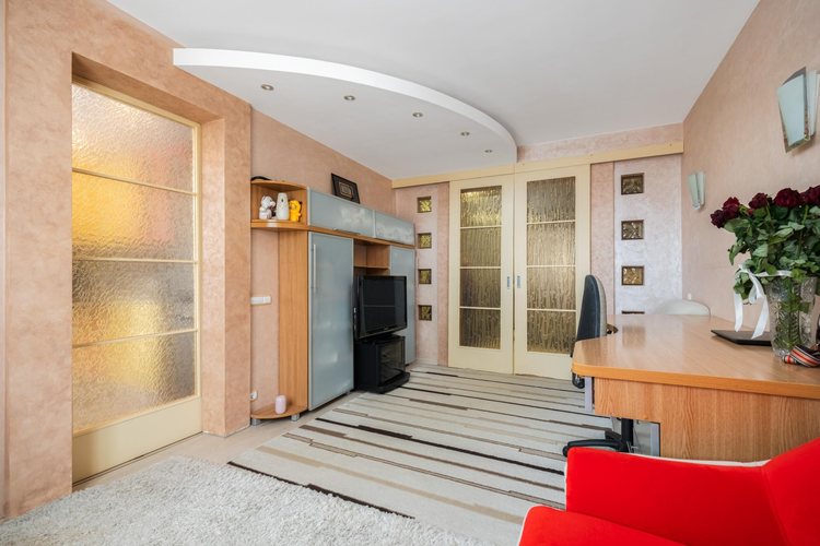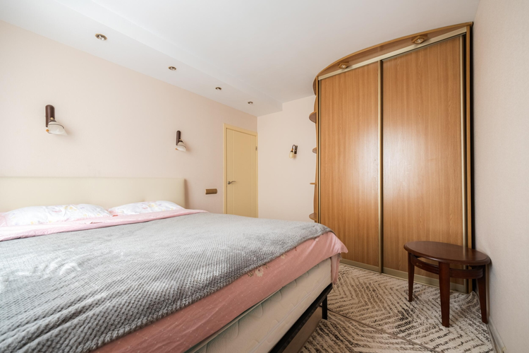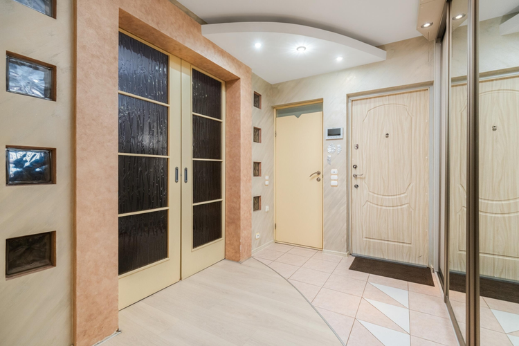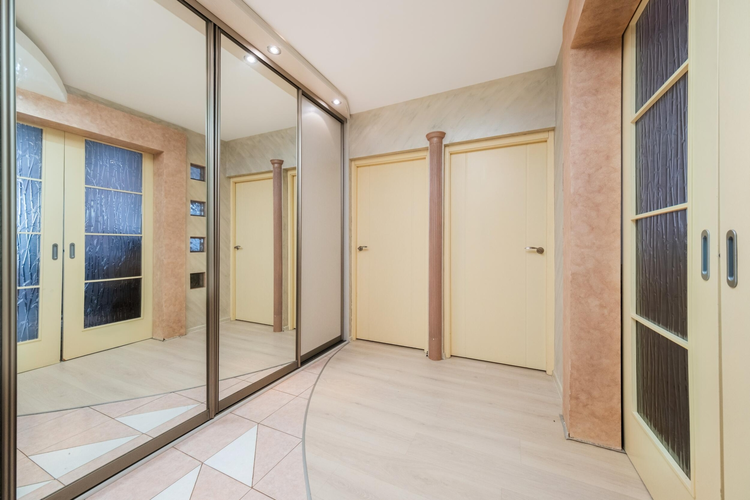 В прихожей вместительный шкаф-купе, совмещенный санузел с угловой ванной и душевой.