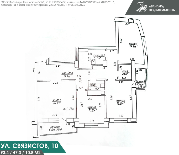Квартира расположена на комфортном 14 этаже из 17. Площадь квартиры 93.4м2, жилая 47.3 м2. Мечта любой хозяйки – просторная кухня 10.8 м2, совмещённая с гостиной и выходом на застеклённую лоджию, возможность принимать гостей или проводить совместные семейные вечера. Высота потолков 2.72 м.