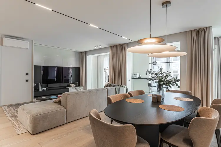 Квартира с идеальной для жизни планировкой: состоит из просторной кухни – гостиной на 55 м.кв.; 2 изолированные комнаты, одна из которых мастер-спальня с гардеробом и собственным санузлом; гардеробной в коридоре и гостевой санузел. Квартира очень светлая и теплая.