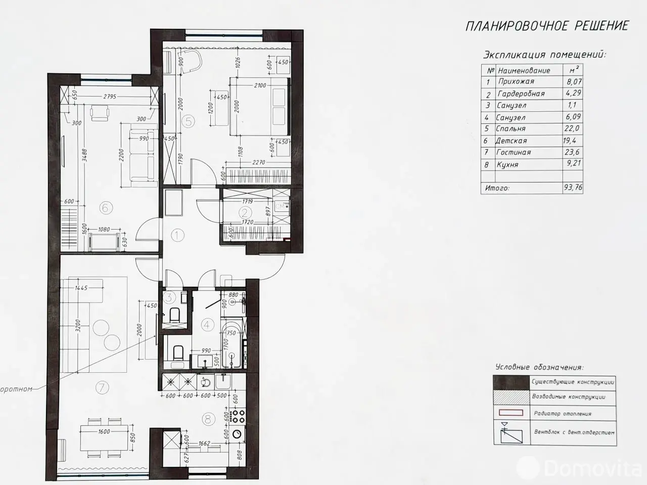 Квартира расположена на втором этаже. Площадь квартиры 90,4 кв.м. (по СНБ 92,4 кв.м.), жилая 63,7 кв.м., кухня 9,4 кв.м. Высокие потолки 3,04 м придают ощущение простора. Гардеробная с постирочной зоной. Два санузла для удобства и комфорта семьи.