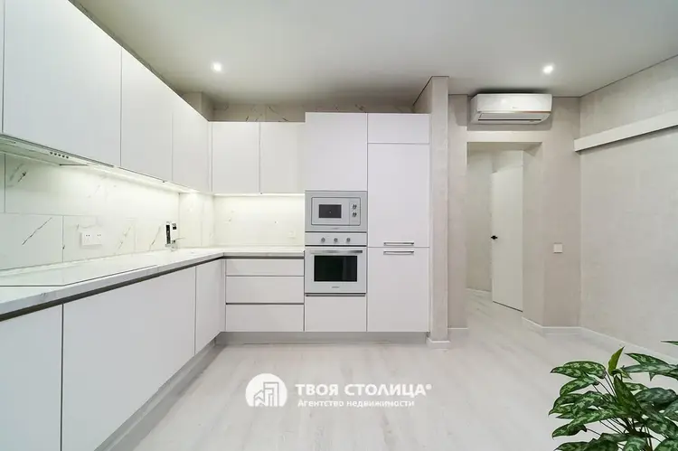 Продается полностью с мебелью, включая стильную встроенную кухню со всей необходимой бытовой техникой: варочная поверхность, вытяжка, духовой шкаф, микроволновая печь, посудомоечная машина, холодильник. Установлен кондиционер. Потолок с теневым профилем, пол - ламинат, плитка. В квартире предусмотрена вместительная гардеробная. К вашим услугам совмещенный санузел с инсталляцией и роскошной джакузи, гигиеническим душем и бойлером. Застекленные лоджия и балкон для дополнительного пространства.