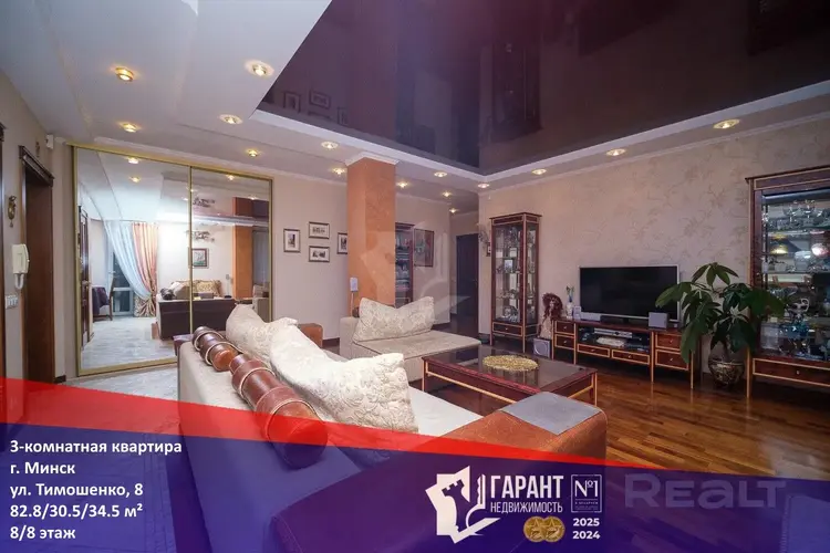 Продается отличная трехкомнатная квартира в одном из самых востребованных районов г. Минска. В квартире великолепная узаконенная планировка: просторная кухня 34,5 кв.м. с выходом на балкон, широкие коридоры, две изолированные комнаты,2 сан.узла. Над квартирой технический этаж . В квартире выполнен качественный ремонт: межкомнатные двери из массива, на полу в жилых комнатах и в большей части коридора паркет, при входе в квартиру и на кухне современный кафель с установленной системой теплый пол, высококачественная входная дверь, установлена встроенная кухня (фасады из массива) с техникой (посудомоечная машина AEG, варочная поверхность AEG , духовой шкаф AEG, шкаф – купе в коридоре, один в спальне, качественные диваны, шкаф в одной из спален из массива, стиральная машина (возможна продажа со всей мебелью и техникой). . В доме установлена система видеонаблюдения, аккуратный подъезд, хорошие соседи. Рядом ст.м. Кунцевщина (5 минут пешком), многочисленные магазины, торговые центры, детские сады, школы, гимназия, физкультурно-оздоровительный центр, парк Космос, веревочный парк. Это отличный вариант для комфортной жизни!