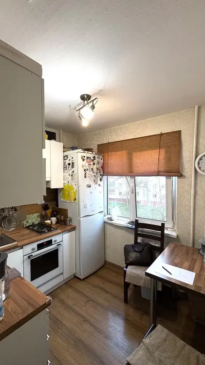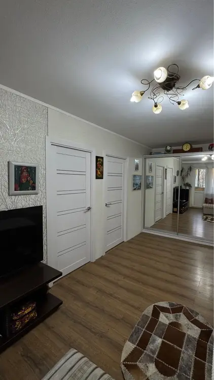 Планировка: две изолированные спальни, просторная проходная гостиная и отдельная кухня. Санузел совмещённый, в коридоре — удобный шкаф-купе. Большой подвал для хранения - примерно 6 м2. Застеклённый балкон.