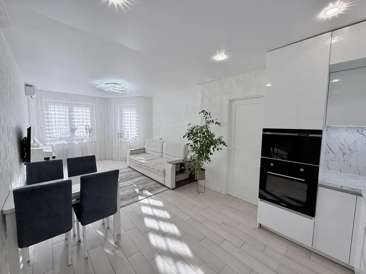Просторная квартира с грамотной планировкой. Кухня-гостиная 24.4м2 и две отдельные комнаты по 12 и 12.8 метров.