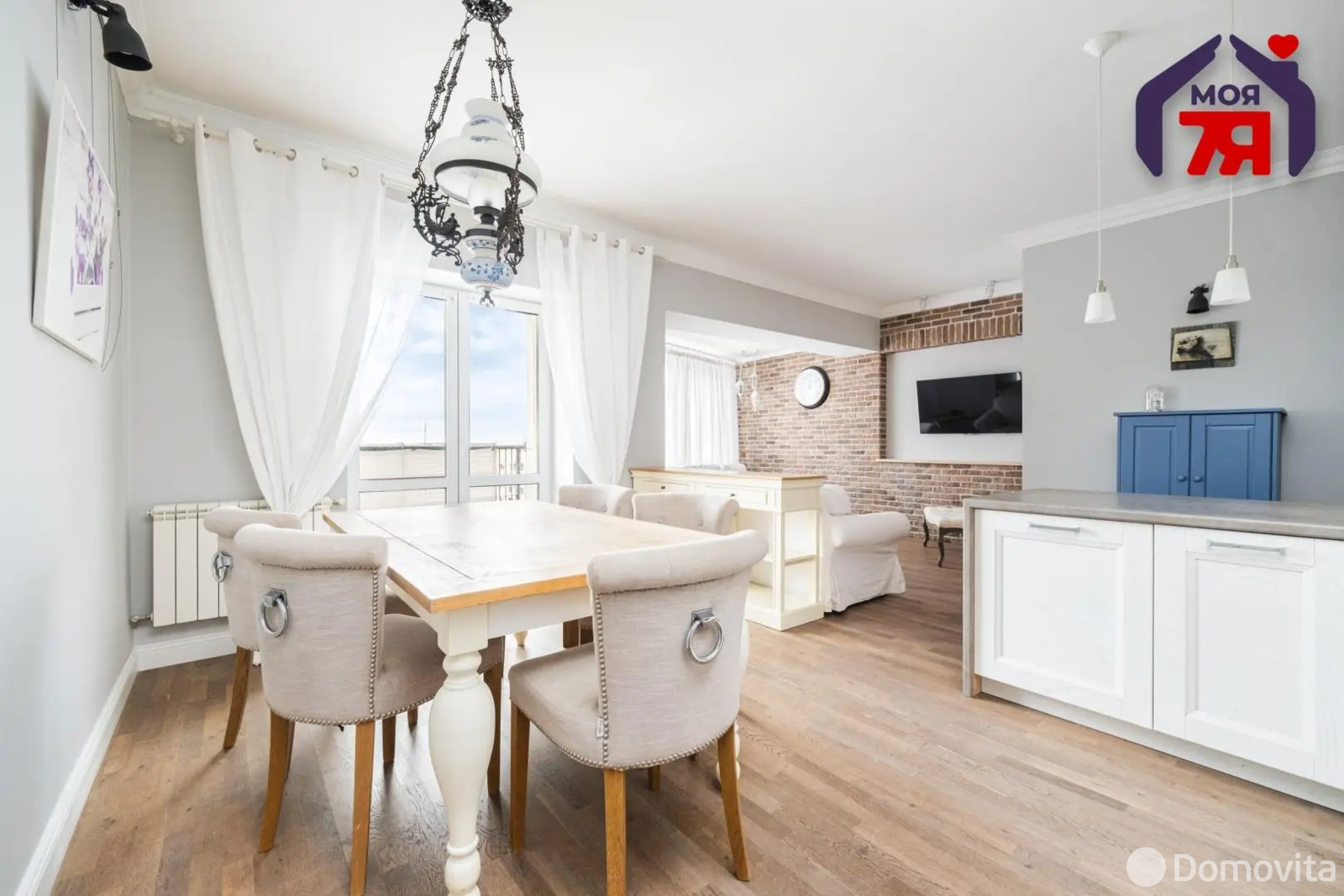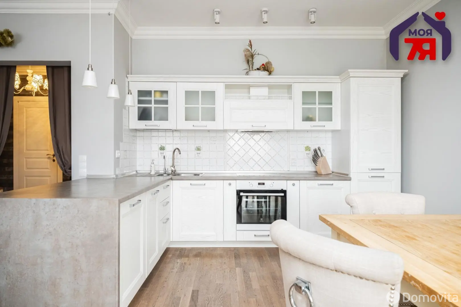 -Кухня выполнена на заказ из благородного массива дуба и дополнена встроенной техникой, что подчёркивает высокий уровень и статус квартиры. Вся техника – практически новая, в идеальном состоянии. В обеденной зоне расположен большой стол, который станет центром семейных ужинов и уютных встреч с друзьями.