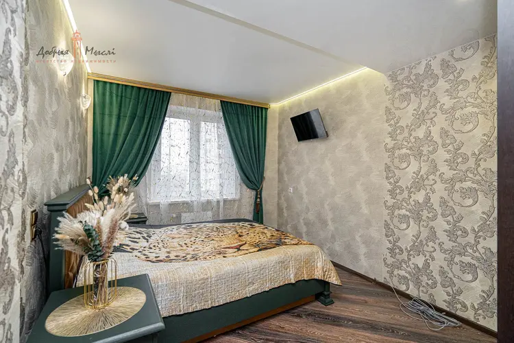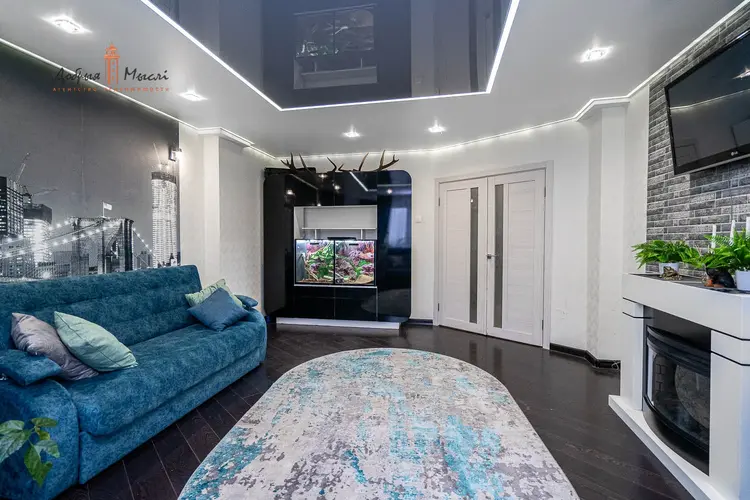 Просторная квартира, окна выходят на северо-западную и юго-восточную сторону. Комната 22,4 кв.м. с эркерным окном. Спальня - 13,2 кв.м., детская - 12,3 кв.м. Кухня - 11,9 кв.м. с застекленным утепленным балконом. Гостевой туалет - 2,0 кв.м., ванная - 3 кв.м., туалет - 2,8 кв.м. Гардеробная - 2,04 кв.м., оборудована всем необходимым для хранения вещей. На полу во всех комнатах - ламинат, в кухне и коридоре - плитка. Туалет и ванная облицованы современной плиткой, с использованием качественных материалов и сентехники. Потолки во всей квартире - натяжные, в комнатах - разноуровневые. Проводка заменена на новую. Стены оштукатурены и оклеены обоями. Все окна в квартире стеклопакеты ПВХ. Металлическая дверь.
