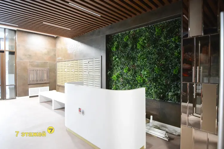 Просторное лобби с зоной консьержа, сквозные подъезды, пандусы.