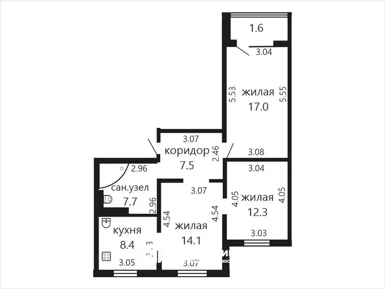 Общая площадь: 67. Жилая площадь: 43.4. Площадь кухни: 8.4
