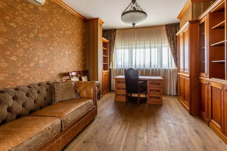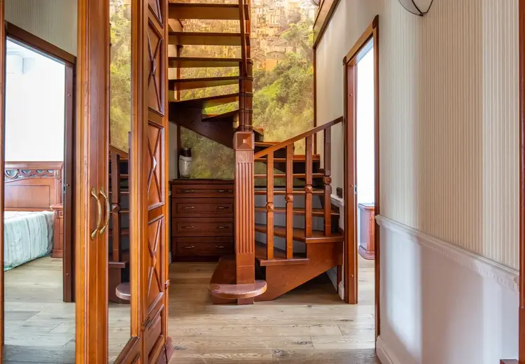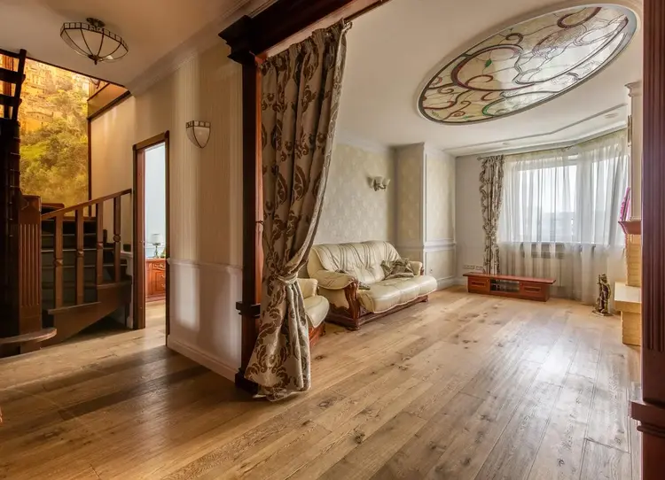 -Мебель, лестница и двери из натурального массива дерева.