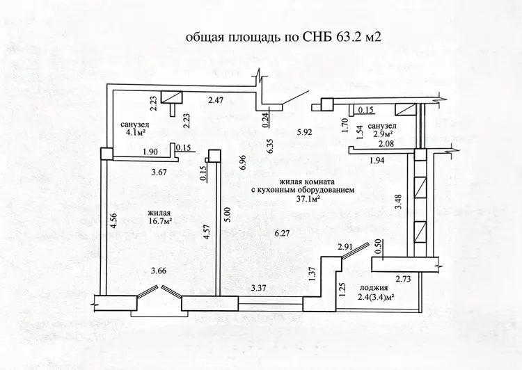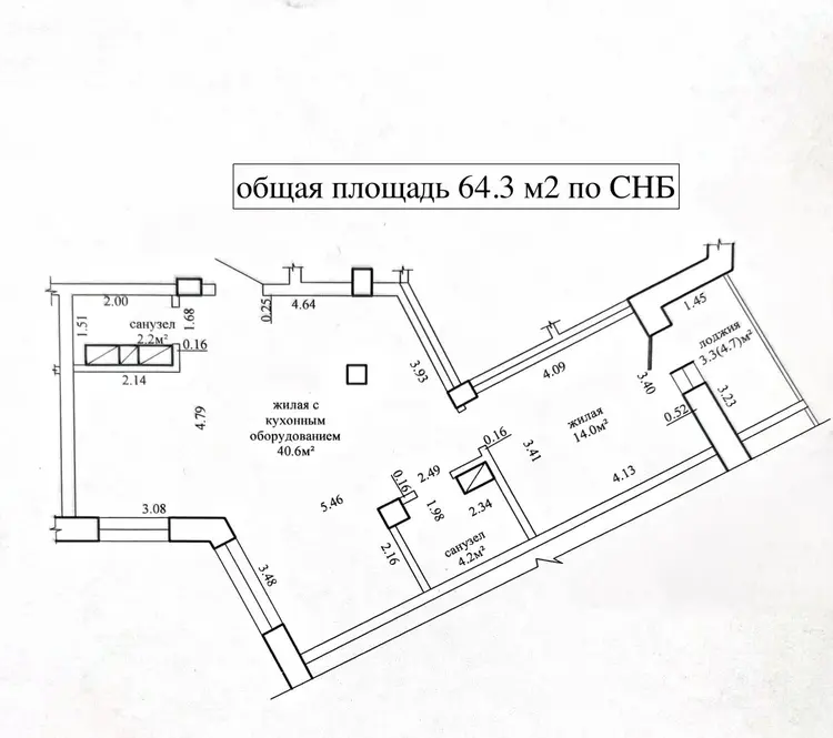 -Площадь квартиры по СНБ 124.8 м2