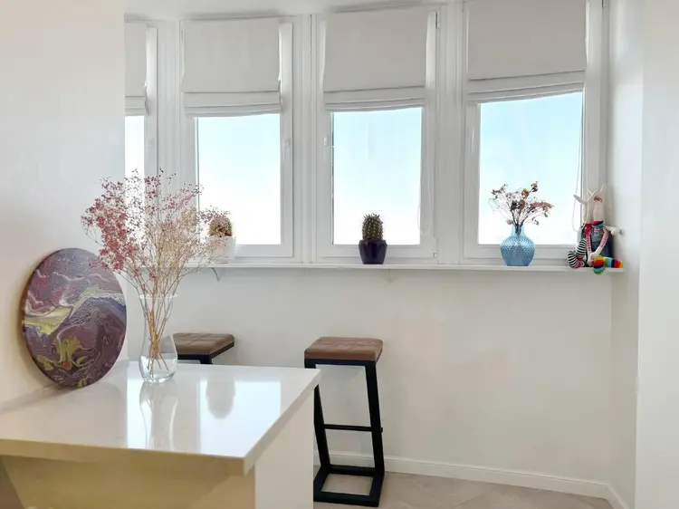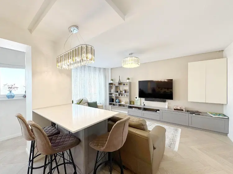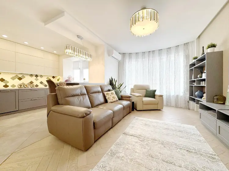 · Просторная кухня-гостиная с выходом на балкон станет сердцем дома. Она оснащена техникой премиум-класса: индукционная панель AEG, духовой шкаф, микроволновая печь, посудомоечная машина и кофемашина Bosch, мощная вытяжка. Эстетику и долговечность подчеркивают столешница и обеденный стол из композит-камня Belenco Covolla.