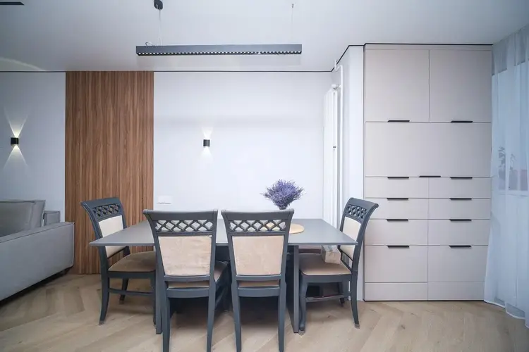 Квартира продается полностью с мебелью, как на фото, и техникой на кухне: посудомоечная машина, духовой шкаф, холодильник и морозильник