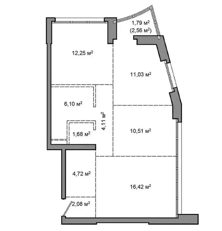 Высота потолков 2,7 м, а в некоторых домах на верхних этажах 3 м.